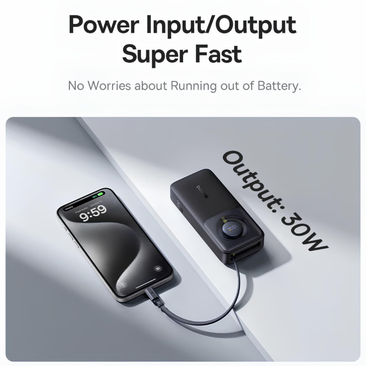 پاور بانک بیسوس NOMOS ظرفیت ۱۰٬۰۰۰ میلیآمپر با شارژ سریع ۳۰ وات