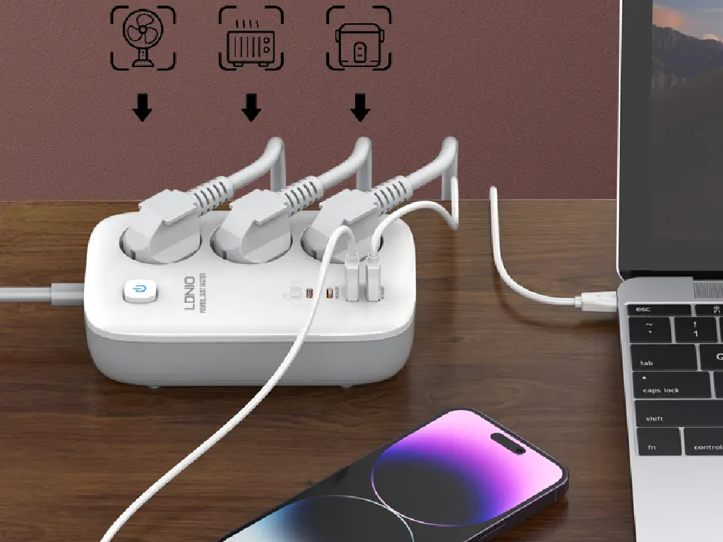 چندراهی برق و شارژر LDNIO SE3436 GaN با ۳ پریز و ۴ پورت USB