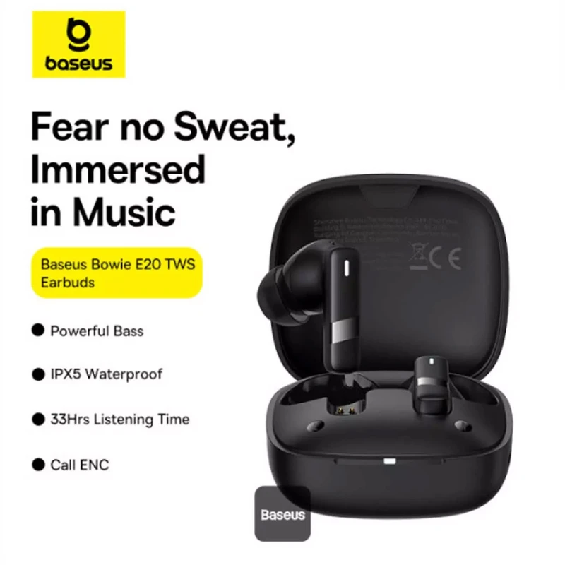 هدفون بیسیم Baseus Bowie E20 ترکیبی از امکانات پیشرفته، طراحی جمعوجور و صدای قدرتمند را ارائه میدهد. دارای درایورهای بزرگ ۱۲ میلیمتری برای تولید باس قوی و صدای واضح است.
